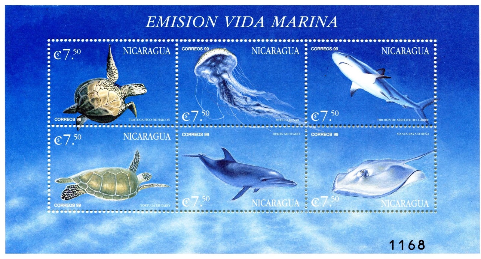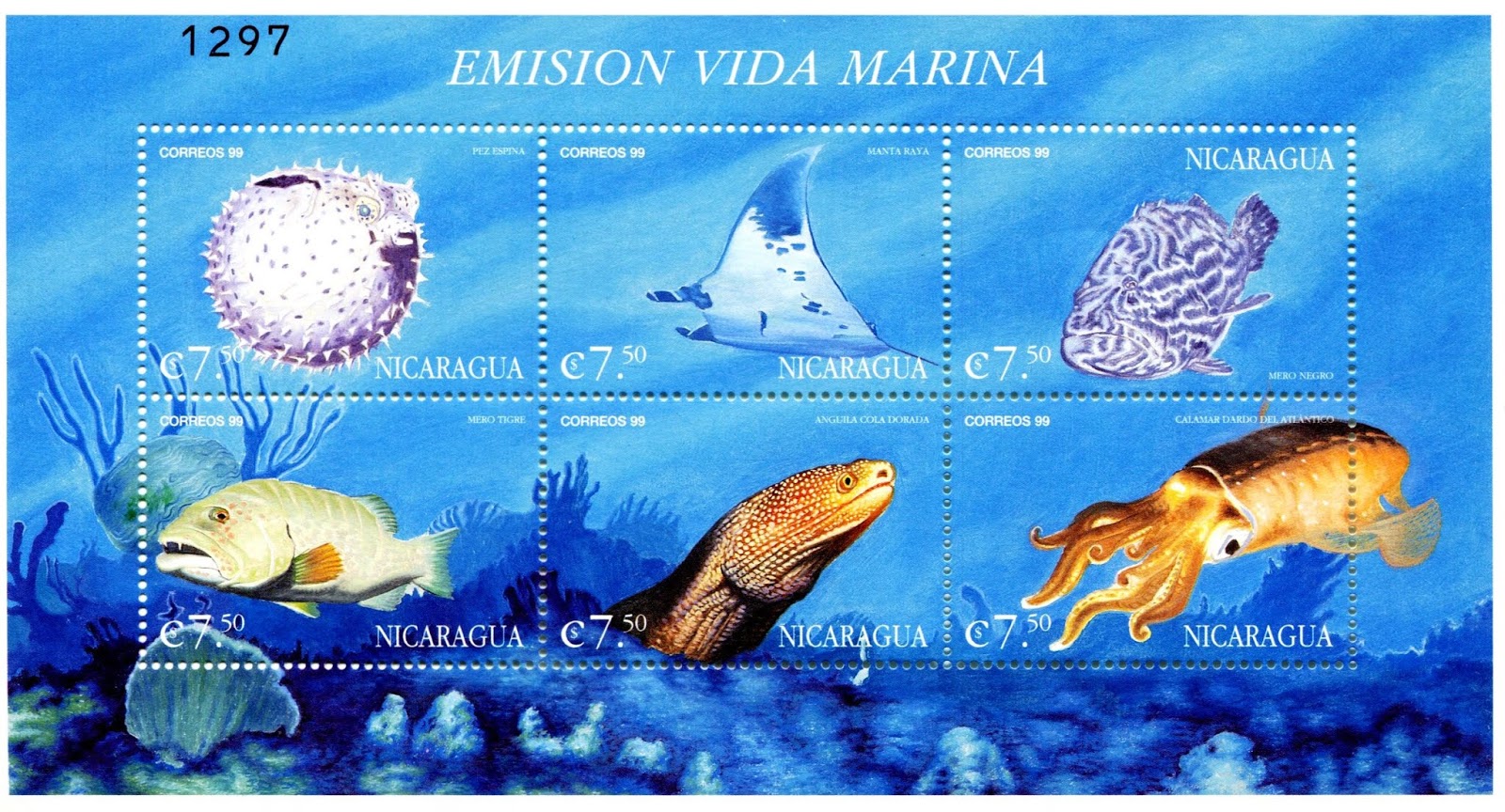 Última emisión de peces emitida por correos de Nicaragua.