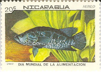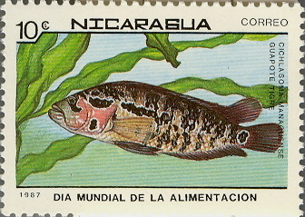 Parachromis dovii. Guapote. Guapote lagunero. Rainbow bass. Emisión de 1987. Conmemoración del día mundial de la Alimentación. Emisión del 18 de octubre de 1987. Set de 7 sellos. Scott 1681-1687 $ 5.05